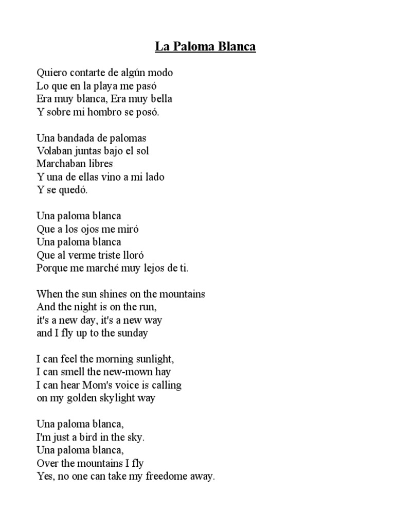 La Paloma Blanca Lyrics - La paloma blanca by julio iglesias (original lyric). La Paloma Blanca Lyrics / Una paloma blanca i'm just a bird in the sky una paloma blanca over the mountain i fly no one can take my freedom away.